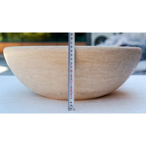 حوض مغسلة من الحجر الطبيعي الترافرتين باللون البيج، مصقول ومعالج (قطر) 41 سم (ارتفاع) 16 سم