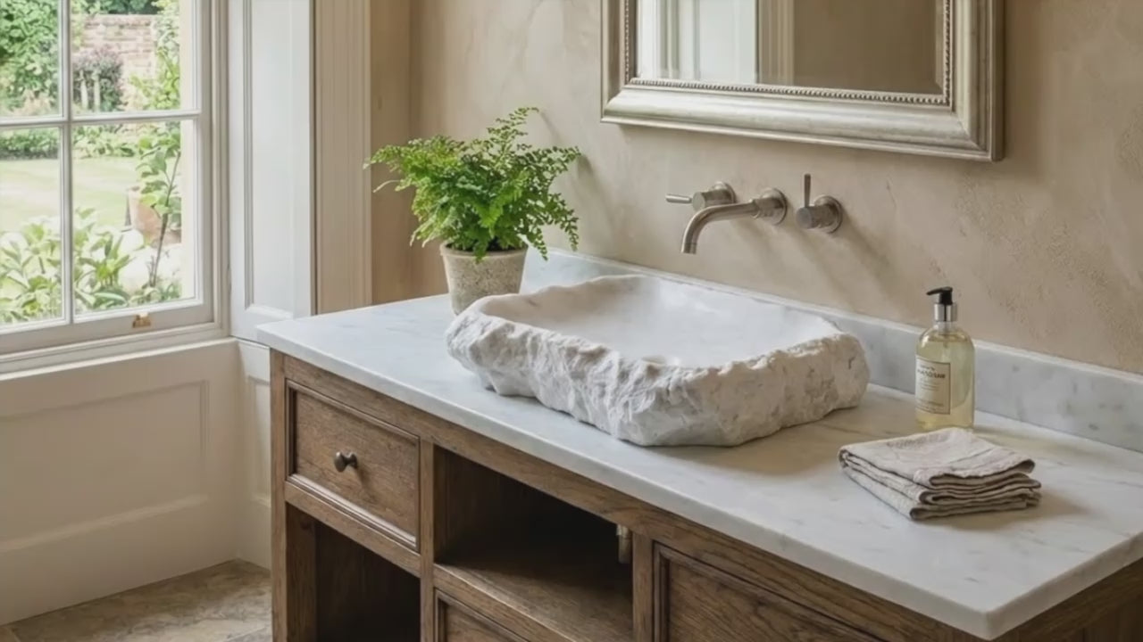 سحر الترافرتين الريفي: يشتهر الترافرتين بألوانه الدافئة والترابية وملمسه المميز، ويضفي على منزلك طابعًا راقيًا وطبيعيًا في آن واحد. وهو المادة المثالية لصناعة أحواض الحجر الطبيعي وأحواض الاستحمام القائمة بذاتها وتكسية الجدران ذات الملمس المميز، مما يخلق ملاذًا دافئًا وجذابًا.