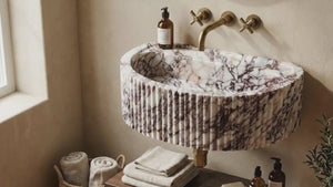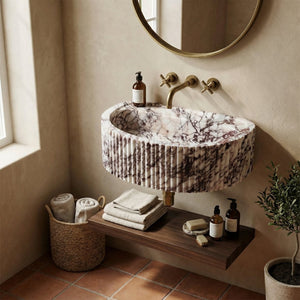 Calacatta Viola Marble Wall-Mount Fluted Half-Round Bathroom Sink (W)16" (L)24" (H)8"offers;