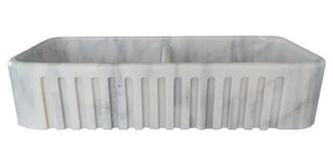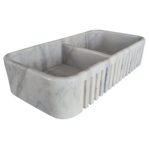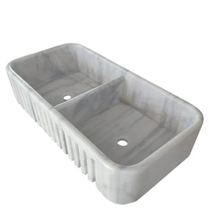 Carrara White Marble Farmhouse Apron Kitchen Double Sink (W)18" (L)36" (H)8" offers;