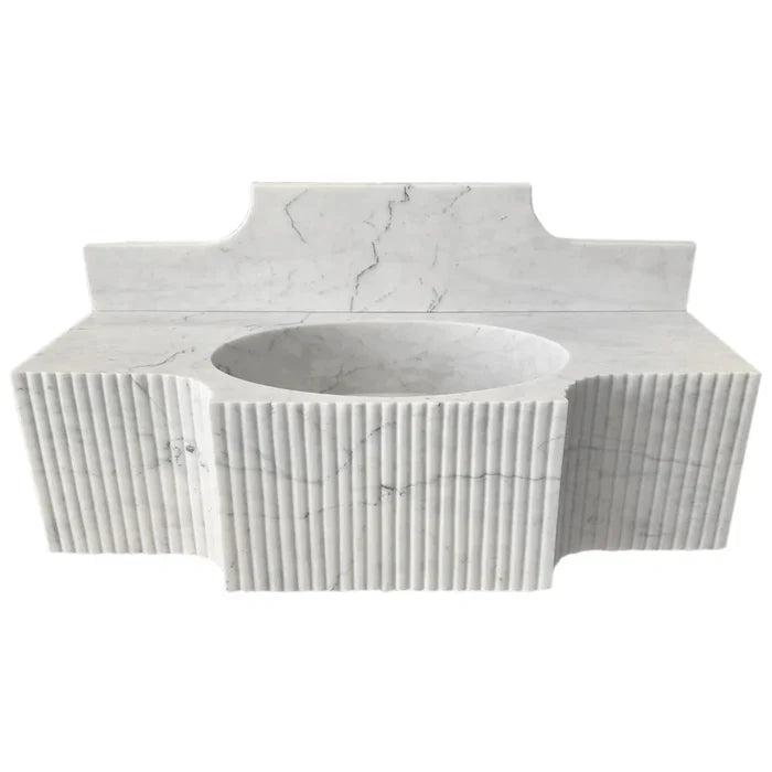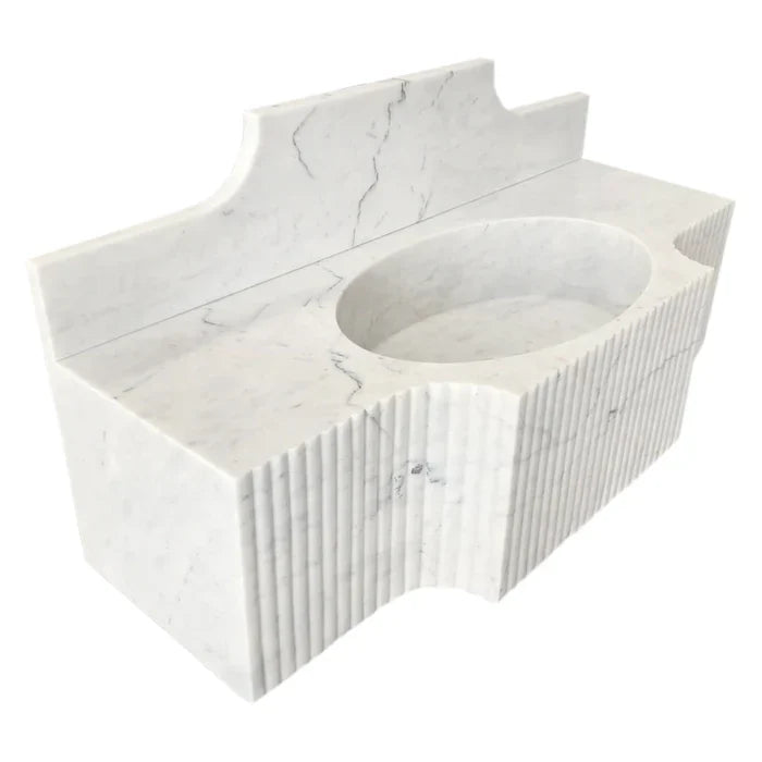 Carrara White Marble Wall-mount Bathroom Sink with 10" Backsplash (W)18" (L)48" (H)10" offers;