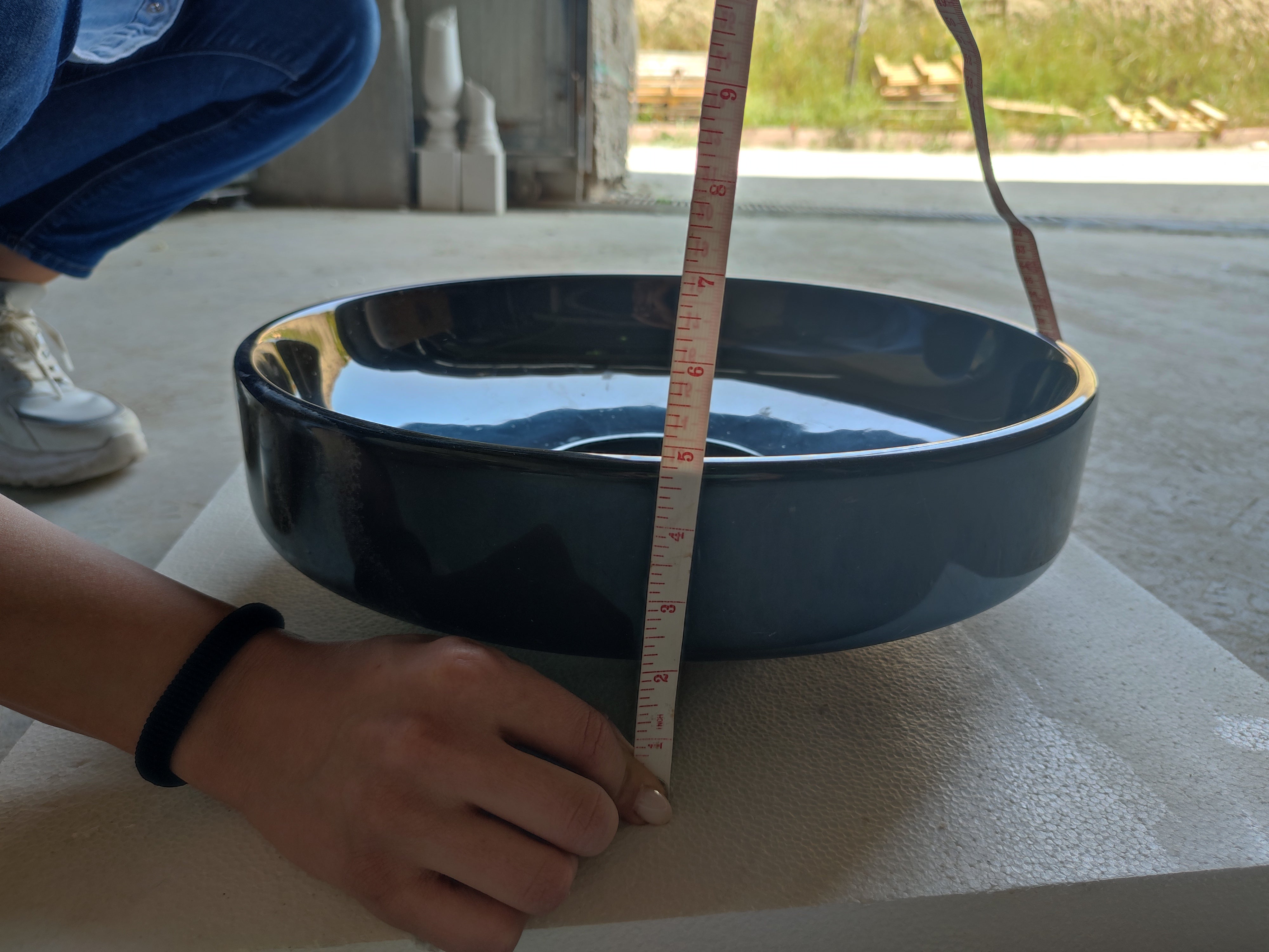 - Sink size is (D)16" (H)5" (Metric Size: the diameter is 40.6cm, height is 12.7cm.)