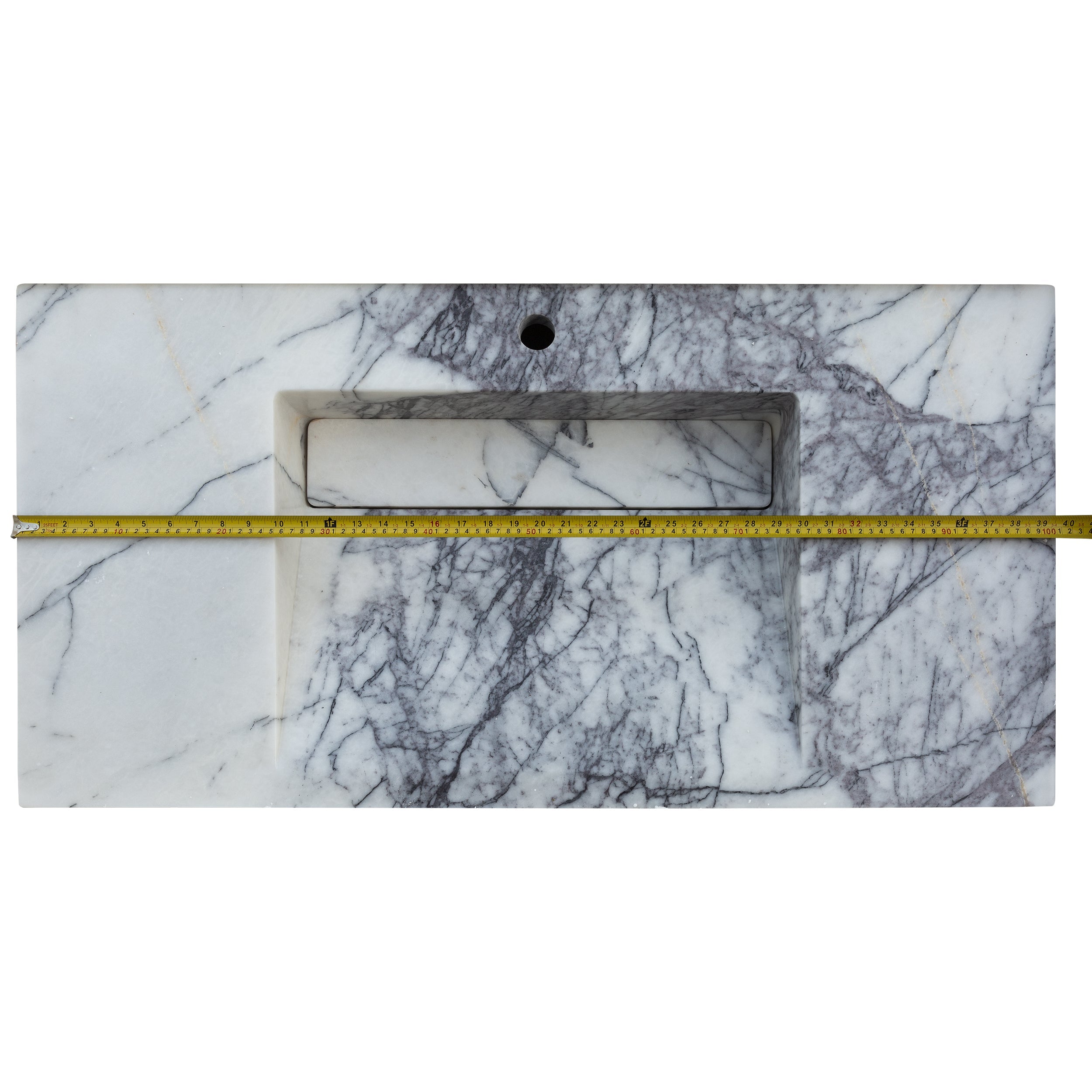 حوض حمام من الرخام من نيويورك، مثبت على الحائط، مزود بمصرف مخفي، مصقول، (العرض) 20 بوصة، (الطول) 40 بوصة، (الارتفاع) 8 بوصات، يقدم: