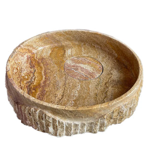 حوض حمام من الحجر الريفي الترافرتين الذهبي من سكابوس، يوضع فوق وحدة التزيين (قطر) 46 سم (ارتفاع) 11 سم