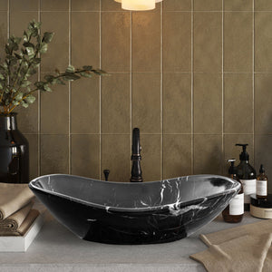حوض حمام بتصميم جوندولا من الرخام الأسود "توروس" فوق وحدة التزيين