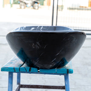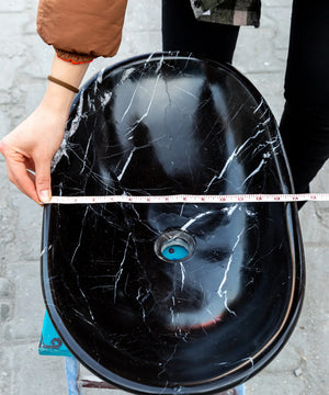 Toros Black Natural Stone Marble Vessel Sink is handcrafted in Turkey and suitable for the above-counter installation.