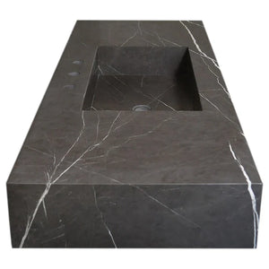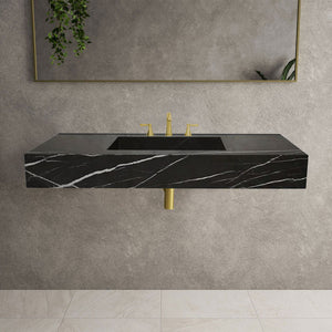 Toros Black Marble Rectangular Wall-mount Bathroom Sink (W)20" (L)48" (H)6"offers;