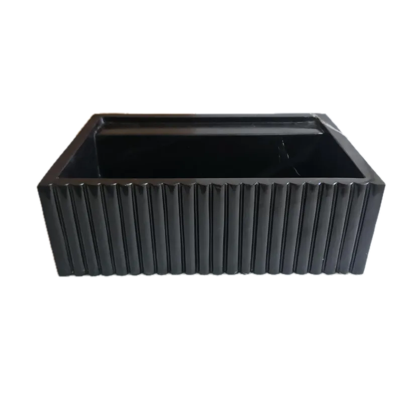 حوض حمام من الرخام الأسود من طراز «توروس» مثبت على الحائط، ذو تصميم مخدد (العرض) 41 سم (الطول) 61 سم (الارتفاع) 18 سم