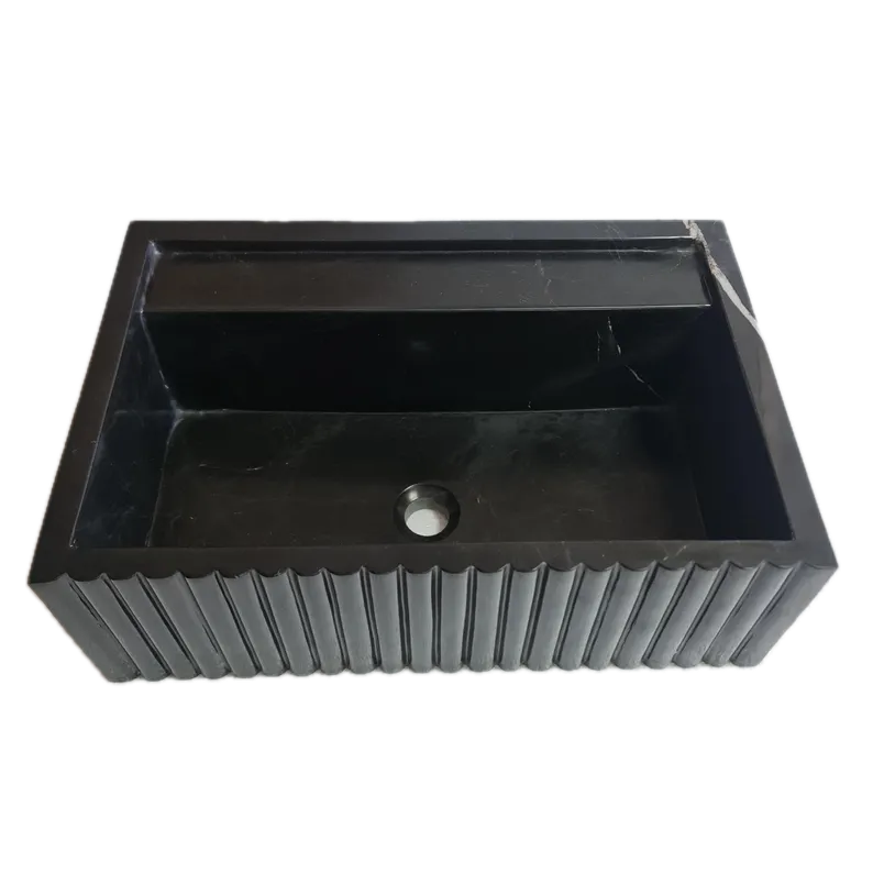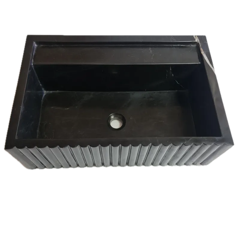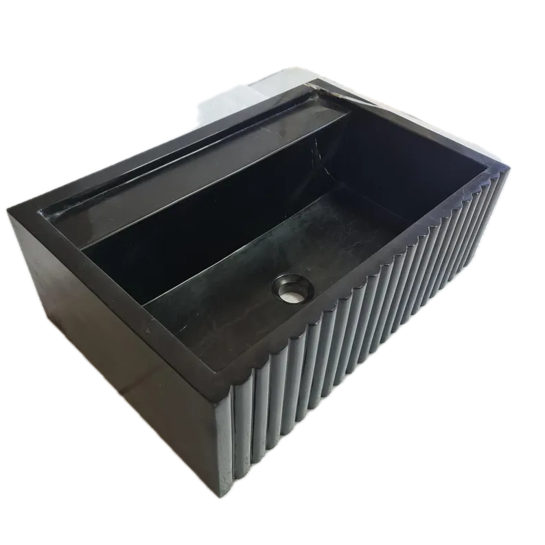 Toros Black Marble Wall-Mount Bathroom Vanity Sink Fluted (W)16" (L)24" (H)7" offers;