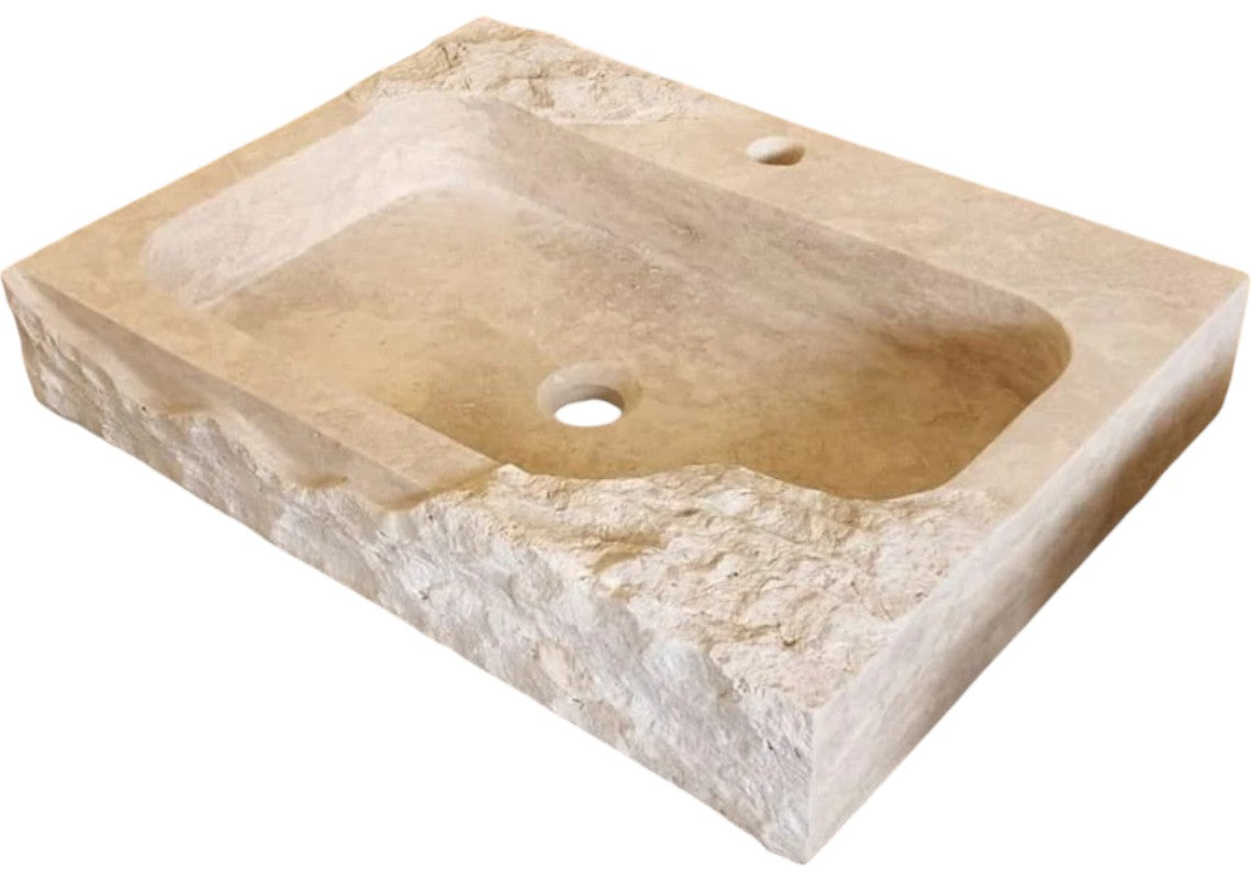 The combination of smooth honed and filled interior and exterior ensures this sink will be the focal point of your bathroom decor. The breathtaking travertine from Turkey will blend into any setting. These rectangular sinks for thebathroom are not only convenient for everyday use, but also an ornament for your living space. The artisanal construction ensures that no two sinks will be exactly identical.